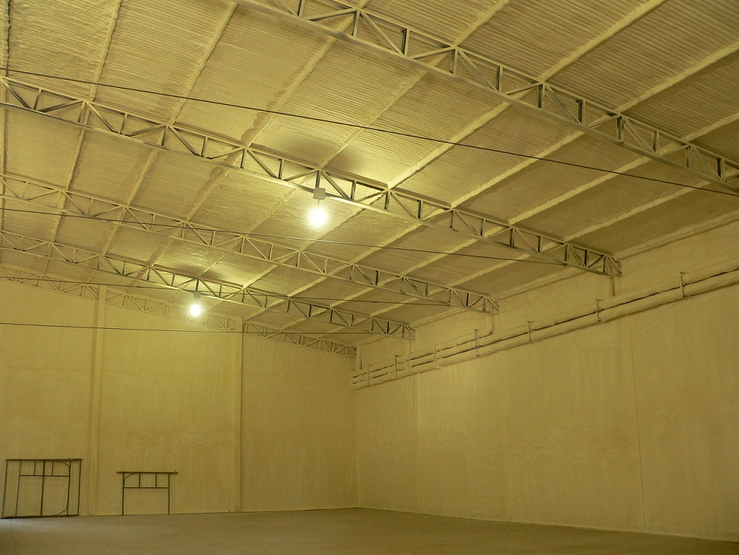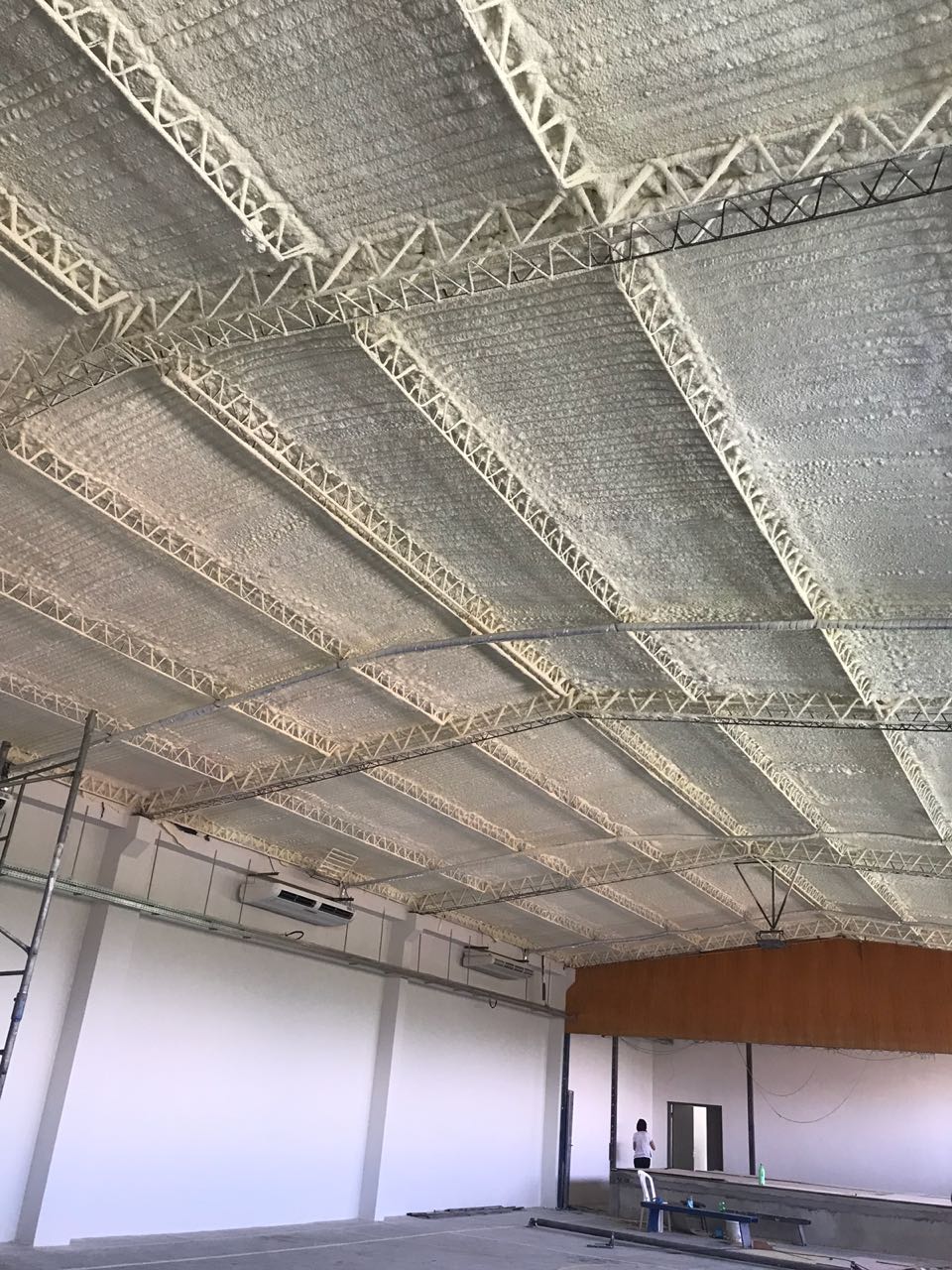 Aislamiento acústico con espuma Phonospray S904, en un polideportivo